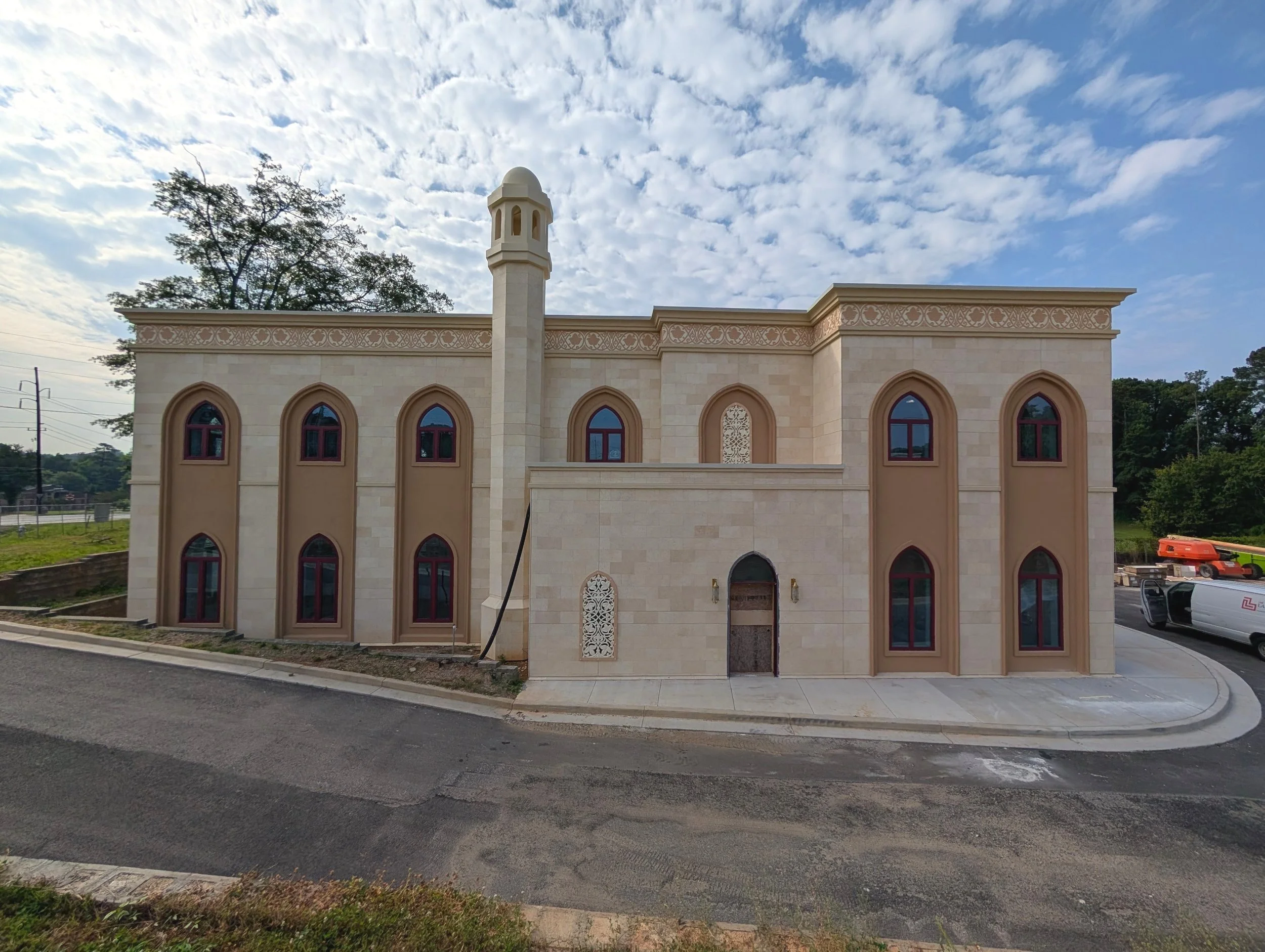 The building is adorned with an Egyptian limestone and GFRC façade, clad hardwood windows, and a variety of decorative elements speaking to the religious traditions associated with this building. The interior contains two floors above grade serving the weekly gatherings with dedicated worship and classroom areas, and a basement floor to provide support spaces and additional room for community gatherings. Hand carved decorative elements line the main function areas, along with custom chandeliers showcasing the craftsmanship emanating from this communities roots.